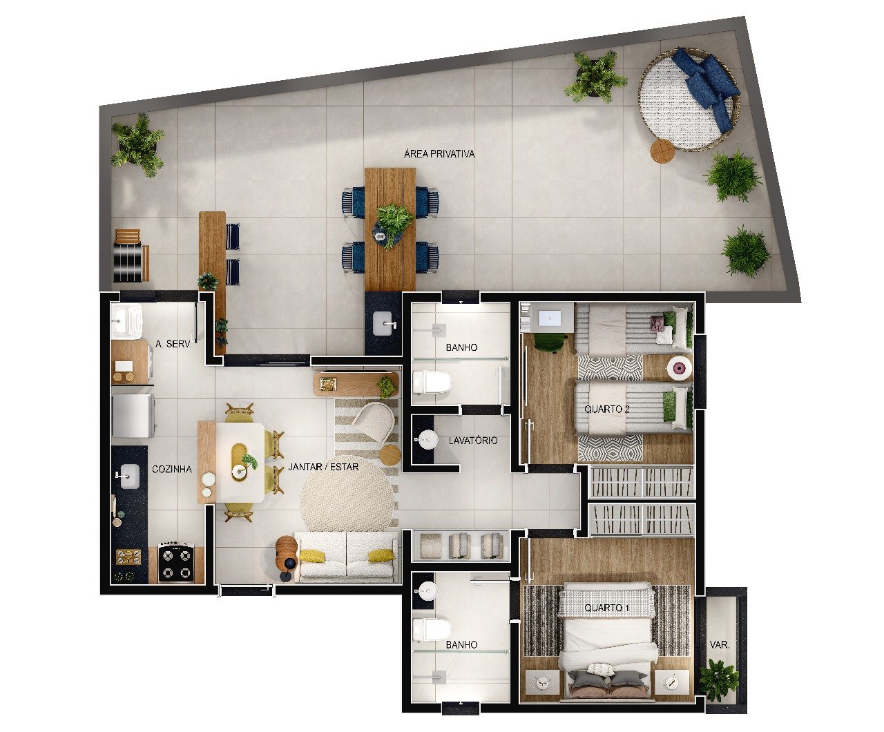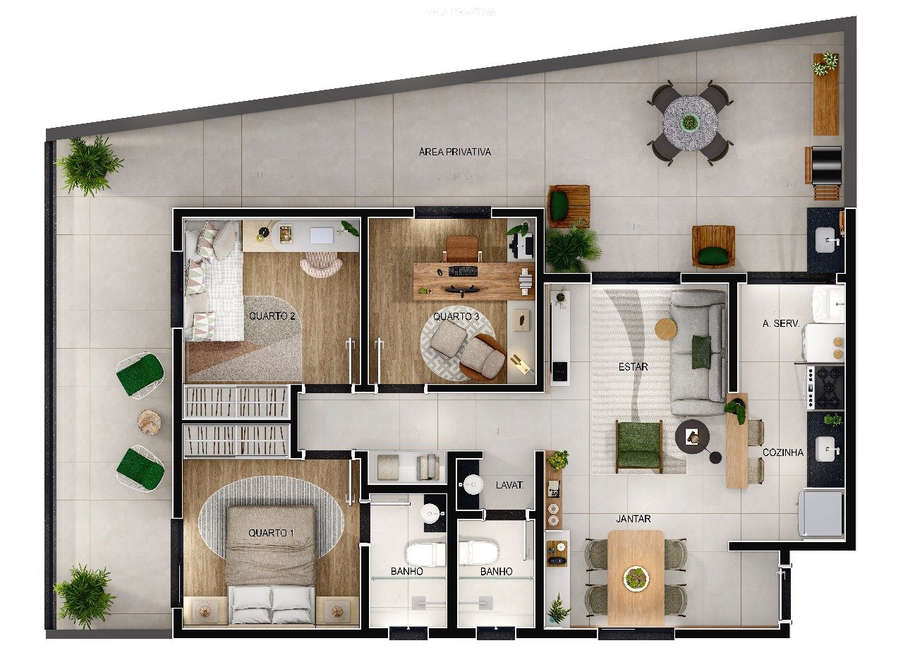 Venha Morar em um apartamento de 2 ou 3 quartos com suíte com opção de área privativa ao lado de uma reserva ambiental definitiva, proporcionando maior tranquilidade e contato com a natureza.